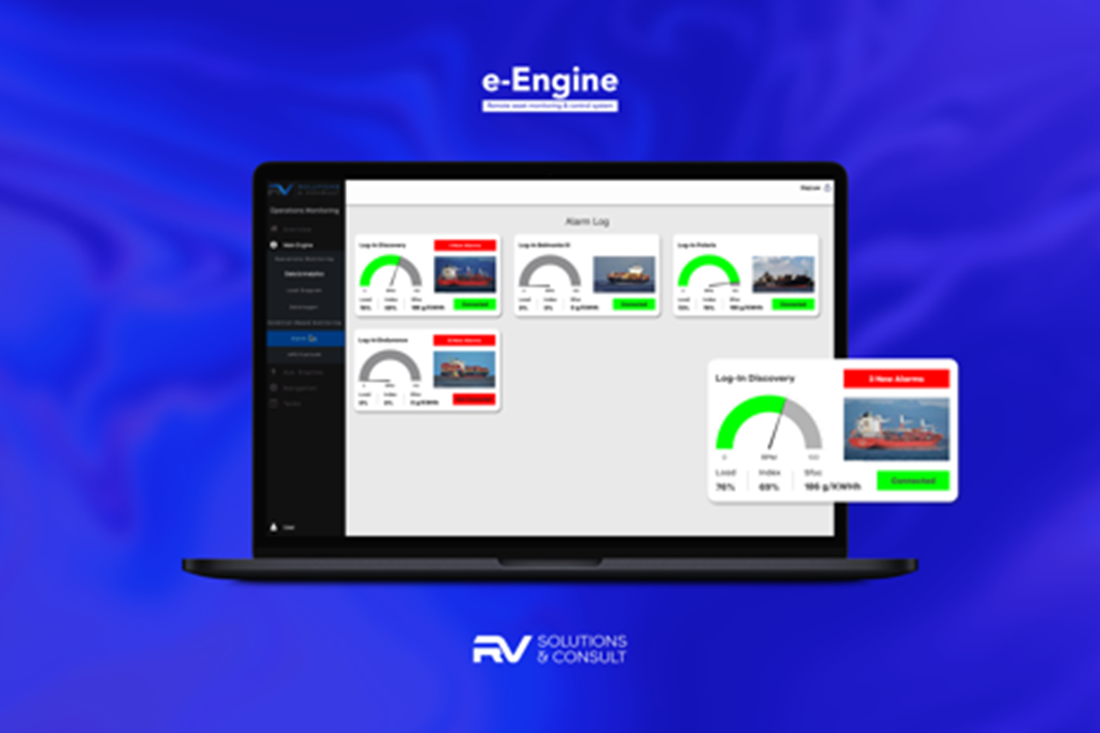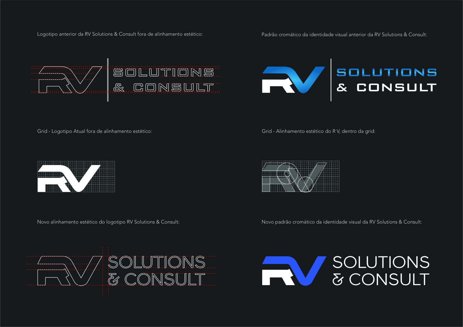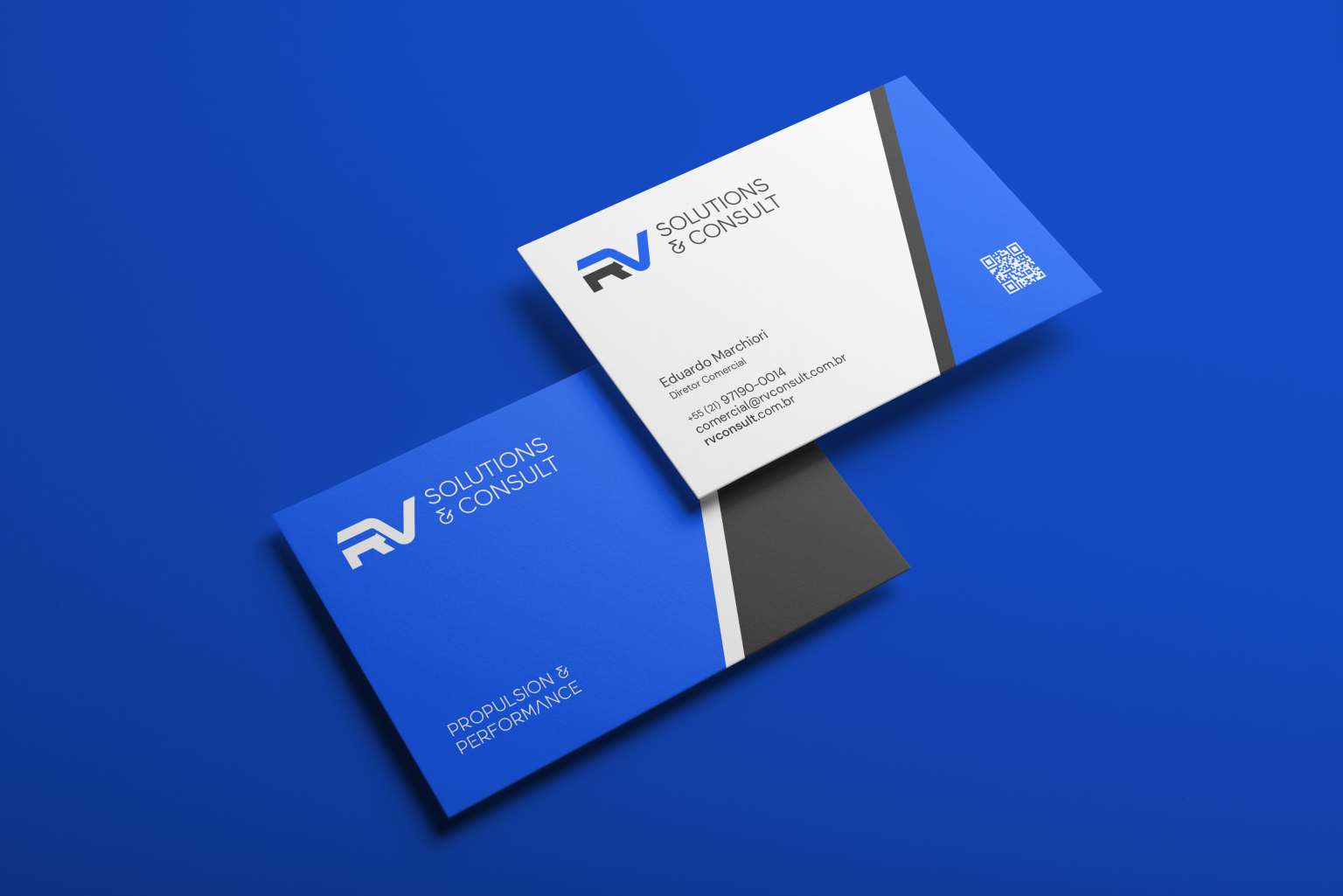 A RV Solutions & Consult surgiu como uma empresa jovem, formada por especialistas em manutenção de motores e propulsores de embarcações de grande porte. Rapidamente conquistou contas importantes e expandiu suas operações para outros países. Com esse crescimento acelerado, veio também a necessidade de uma marca capaz de refletir a inovação, o profissionalismo e a competência que a empresa entregava ao mercado.